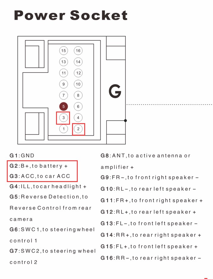 4) Please measure the ACC(G3 pin) and B+(G3 pin) it they have 12V power on the end to our device.